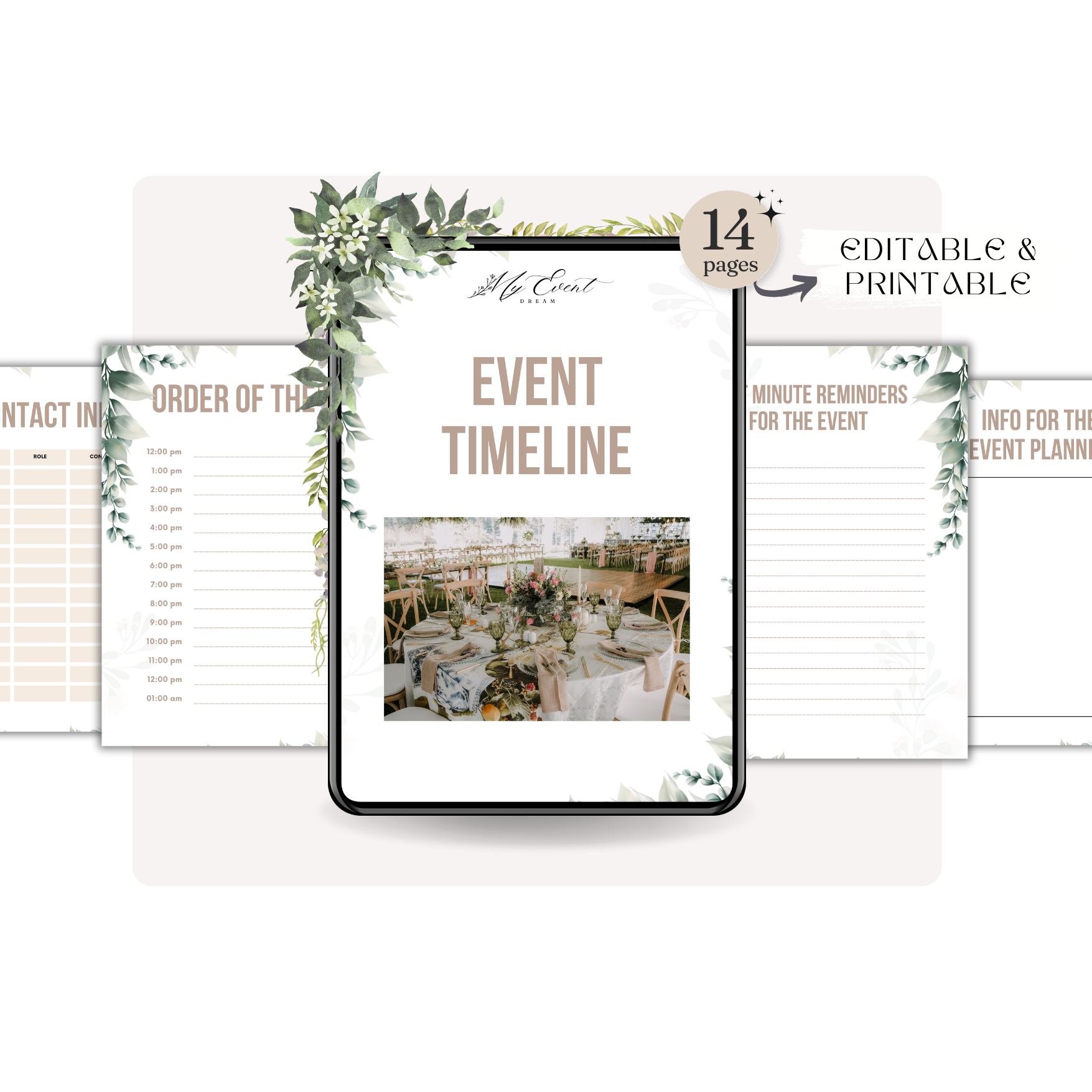 14 pages including minute-by-minute schedules, vendor coordination sheets, and day-of reminders that keep you in control.
