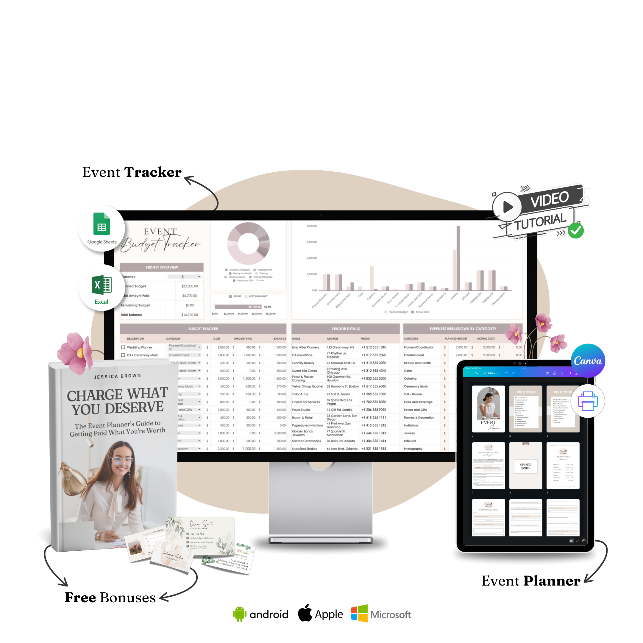 My Complete Wedding Tracker is compatiblewith all Apple, Android, and Windows devices.