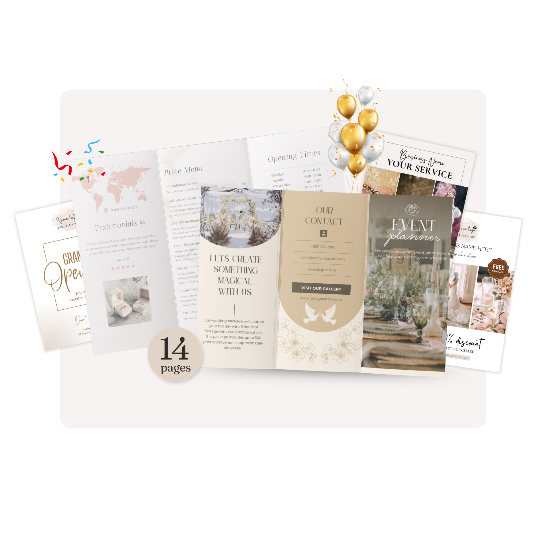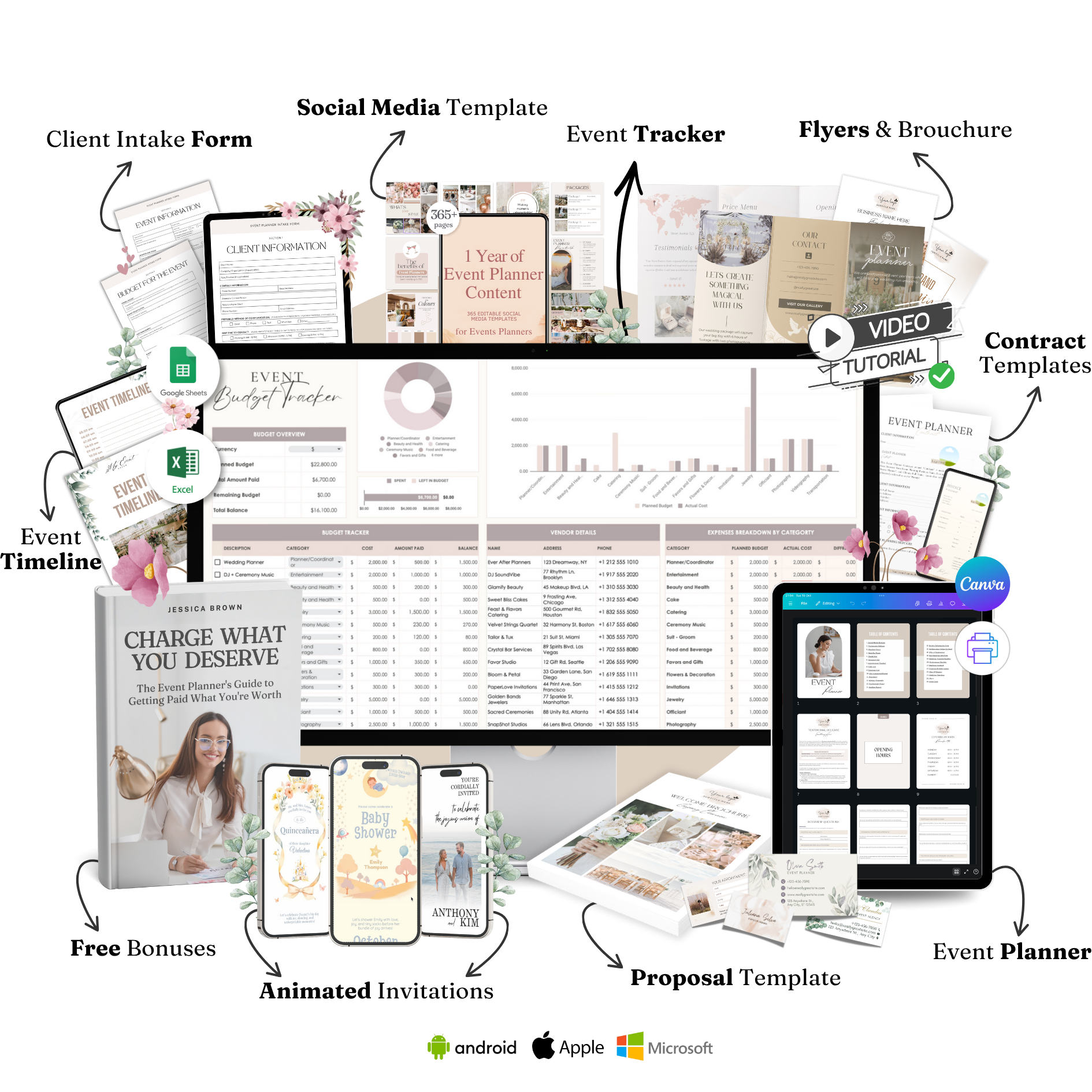 Client Intake FormFlyers & BrouchureProposal TemplateEvent TimelineContract TemplatesAnimated InvitationsSocial Media TemplateGuide Step by Step